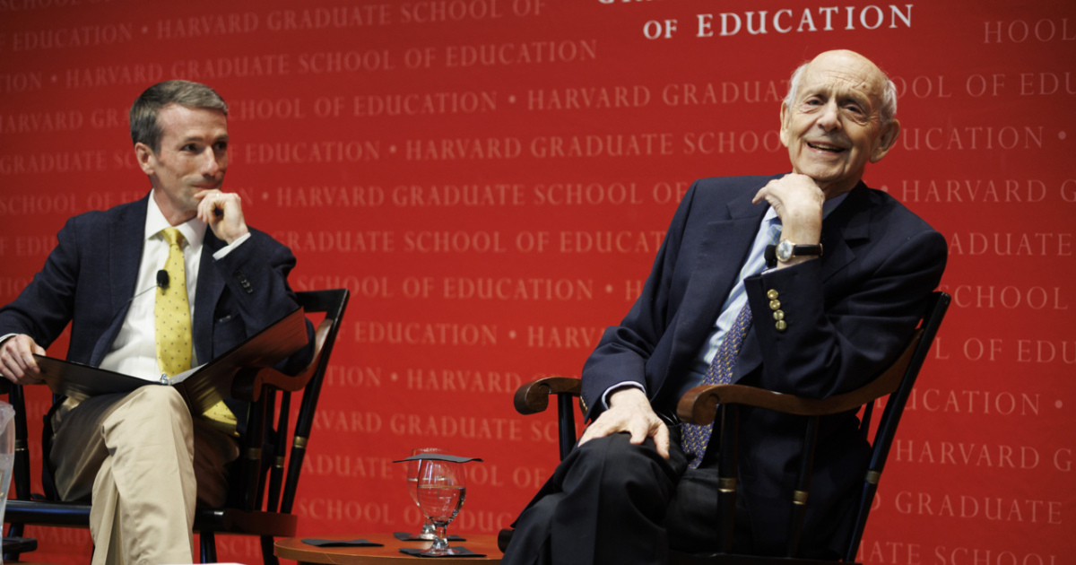 Askwith Education Forum Civics, Compromise, and How Decisions Get Made Supreme Court Justice Stephen Breyer reflects on how government affects institutions and the country’s education system as a whole at the Askwith Education Forum Posted April 24, 2026 By Ryan Nagelhout Education Policy K-12 System Leadership Moral, Civic, and Ethical Education Academic Dean Martin West and Justice Stephen Breyer at the Askwith Education Forum on April 21, 2026 Photo: Grace Duval/Harvard University The final Askwith Education Forum of the spring semester featured a reflection on how government and the law impacts the American education system from one of the most influential members of America’s highest court.The Honorable Stephen G. Breyer shared insights from his time on the bench and offered an inside look at how the court ruled on some of the most complex and challenging cases during his nearly 28 years as an associate justice on the United States Supreme Court.Introducing the evening’s conversation, Dean Nonie Lesaux quoted Breyer who once described public schools as "nurseries of democracy” and highlighted the connective thread between education, civics, and the rule of law in America.“At a moment when education and democracy face unprecedented challenges in the U.S. and around the world,” said Lesaux, “We are so very fortunate to be able to learn from a public servant and scholar who has spent a lifetime thinking about how institutions — including our schools — endure and thrive.”Breyer, who mentioned that his wife, Joanna Breyer, Ed.M.’75, was a graduate of the Ed School, shared the Askwith Hall stage with Academic Dean Martin West, who led the retired justice through a number of landmark cases Breyer ruled on that involved schools, free speech, and affirmative action.While discussing a free speech case involving a high school student, Breyer at one point pulled a copy of the U.S. Constitution out of his jacket pocket and read aloud the First Amendment, which guarantees citizens free speech. Breaking down its wording, Breyer noted what it says and doesn’t say, and detailed the “roadmap” it offers citizens to engage in their democracy.“Why do we have this? Because we live in a democracy, and we therefore have a problem: How can 340 million people shape these 538 who have the actual power to make the law?” asked Breyer asked. “It’s going to somehow be through public opinion.”Though Breyer noted that around 40% of the cases the high court hears see unanimous rulings, the more rare split decisions offer valuable lessons in the various interpretations of the U.S. Constitution and how he carried out his job on the high court.“Law itself is a human institution, and it’s a human institution that has a basic function,” said Breyer. “Not always successfully, not always done, but it has a basic point of trying to get people in communities to live together more peacefully and more productively.”Breyer touched on the various ways judges can interpret the Constitution, the value of reading words as they are written or diving into the meaning behind them, and how one’s own upbringing impacts the way they form legal opinions.“The best I can do in the cases that you brought up, which are extremely difficult for me, is to try to show you how you work with value-infused principles to try to figure out the better answer to the case,” said Breyer. “You’ll never know whether this result you reached in this case is going to help or not. You try. And I would only disagree with you if you think that isn’t similar to teaching. I think it is.”Breyer, who retired from the high court in 2022 but still works the bench on the First Circuit Court of Appeals, touched on recent rulings the Court has made since his retirement. He expressed optimism in recalling conversations about the future he’s had with young students, noting that they’re especially interested when he offers lessons about finding compromise among those that disagree.“They’re interested. They’re interested in what they might do to cure some of these problems in front of us,” Breyer said, pulling out his pocket constitution one more time. “Whether right or wrong, it’s the look in their eyes that makes me optimistic.” Askwith Education Forum Bringing innovators and influential leaders to the Harvard Graduate School of Education Explore All Articles Related Articles Askwith Education Forum Beyond Recovery National education leaders gather at HGSE to explore meaningful, actionable solutions in the wake of COVID-19 EdCast Can Universities Teach Us to Talk Again? Political scientist Eitan Hersh explores how universities can help bridge divides by fostering viewpoint diversity and teaching students to engage across differences Askwith Education Forum Askwith Education Forum Dives Deep into AI In Education Professor Howard Gardner led a conversation about thinking and learning in an AI-powered world