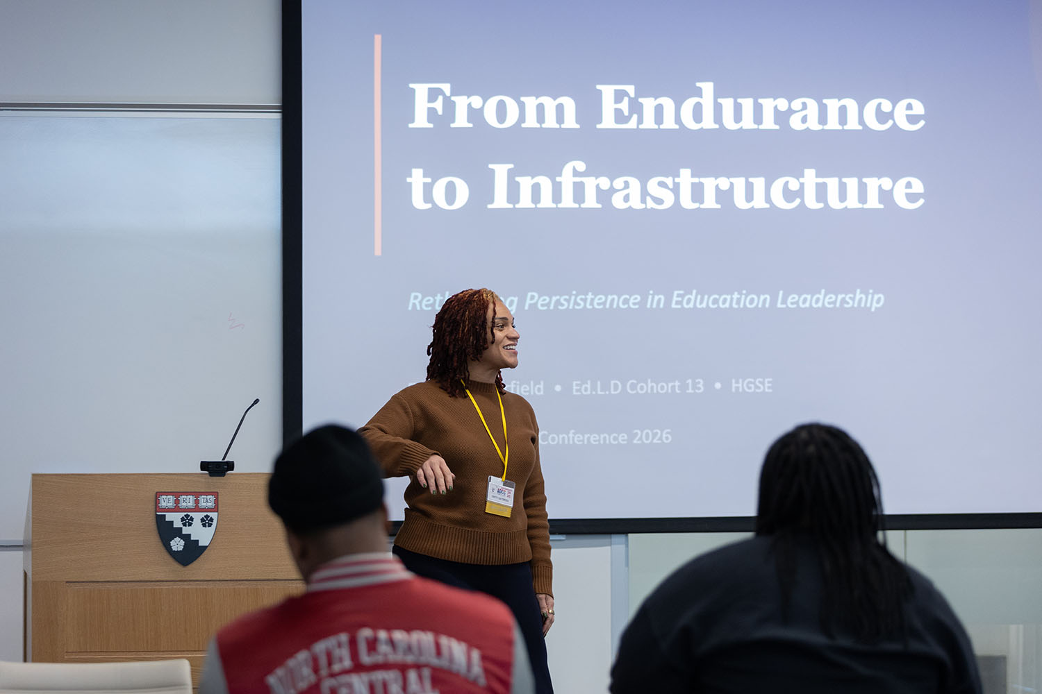 News Rewriting the Narrative at AOCC 2026 The 24th annual Alumni of Color Conference brought bold visions for the future of education to Appian Way Posted March 13, 2026 By Ryan Nagelhout Career and Lifelong Learning Diversity, Equity, and Inclusion Lisa Delpit, Chris Emdin, and AOCC student co-chair Bryson Green share in dialogue at Askwith Hall. Photos by Carolina Ruggero The first weekend of March brought learning, love, and persistence to Appian Way as the Harvard Graduate School of Education hosted the 24th annual Alumni of Color Conference (AOCC).This year’s theme, “Rewriting the Narrative: Persistence as Innovation,” was a call to reimagine persistence not as endurance alone, but as a creative force driving meaningful transformation in the field of education.Often described by attendees as a homecoming, AOCC 2026 featured hug-filled reunions and fit checks, sessions with bold visions for the future of education, and a DJ keeping the energy up before keynote speeches in Askwith Hall.“I hope these two days help you remember why you loved this institution,” said Dean Nonie Lesaux in a prerecorded address. “And that you come away feeling reenergized and rededicated to changing the world through education.”Speaking on this year’s theme, Lesaux noted that persistence is not an inherent trait in learners, but an important one in every educational journey.“The good news is that persistence is a skill that can be learned and developed. A muscle, so to speak,” said Lesaux. “And that’s why I think you’re exactly right to remember that persistence is about not just endurance, but about learned actions and strategies that can empower individuals and groups to create better outcomes.”Friday’s keynote address was a dialogue between Florida International University professor Lisa Delpit, Ed.M.'80, Ed.D.'84, and Chris Emdin, a professor of science education at Columbia University’s Teacher’s College. Delpit and Emdin, whose dialogues were the basis for a new book — The Sacred Art of Teaching — brought an impassioned and warm back and forth to the Askwith Hall stage in Longfellow Hall.Evoking themes of community, communication, and the power of teaching, Emdin and Delpit advocated for finding purpose and medicine in the pursuit of academic excellence for yourself and others in the classroom.“This whole notion of communication, I believe, is not only built for political action, but also for our students in education,” said Delpit, a MacArthur “Genius” Fellow. “They’re the ones who we have to push to talk to each other. About math problems, about social problems, about whatever. That is where genius comes: from the collective mind of whoever might be in front of us.”Emdin spoke passionately about his favorite teaching moments, which come from a “willingness to give our full selves” to learners and let them carry that lesson forward to others.“In this room today, somebody in here has received what they need,” said Emdin. “And they will carry with it what they will and then offer it to somebody else. A child in the classroom, a colleague on the train. And that’s how the reciprocity of teaching occurs. But somebody has to set that domino in motion, and I always choose to try my best to be it.”Saturday’s events were anchored by a keynote speech featuring another duo, Drs. Peter and Didi Watts, who founded the Watts of Power Foundation, which aims to create a diverse pipeline of teachers from historically marginalized backgrounds in the Los Angeles area.This year’s AOCC also marked a first for the conference — a “satellite site” event in Atlanta, Georgia, which takes place on March 14 and is coordinated by AOCC Online Student Liaison Taylor Goyette-Frechette. Image opens in new tab. Image opens in new tab. AOCC student co-chair Johnny Reed introduced Friday evening's keynote address. Image opens in new tab. Lisa Delpit, Ed.M.'80, Ed.D.'84, addresses the AOCC crowd at Friday's keynote address. Image opens in new tab. Askwith Hall was alive with music, inspiration, and a sense of purpose during Friday's keynote address. Image opens in new tab. Teachers College at Columbia University professor Chris Emdin addresses Askwith Hall during Friday evening's keynote address. Image opens in new tab. AOCC 2026 asked attendees to reimagine persistence as more than just endurance, but a creative force to drive change in education. Image opens in new tab. Image opens in new tab. Breakout sessions at AOCC highlighted aspects of this year's theme, "Rewriting the Narrative: Persistence as Innovation." Image opens in new tab. Farah Assiraj, Ed.L.D, was one of several HGSE students who led conversations at the AOCC. Image opens in new tab. Ed.L.D. student Evetty Satterfield presents at AOCC News The latest research, perspectives, and highlights from the Harvard Graduate School of Education Explore All Articles Related Articles News AOCC 2023: Authenticity and Activism in Education This year's Alumni of Color Conference will take "A Journey Toward Healing" News AOCC 2025 Will Highlight the Power of Critical Hope The 23rd annual Alumni of Color Conference takes place at HGSE on February 28 and March 1 Ed. Magazine What It Means to Look Like a Film Director Master’s student breaks out in Hollywood as she breaks stereotypes